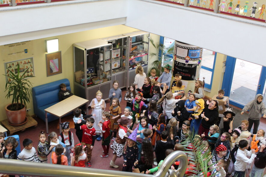 Die Faschingspolonaise zog durch das Schulhaus.